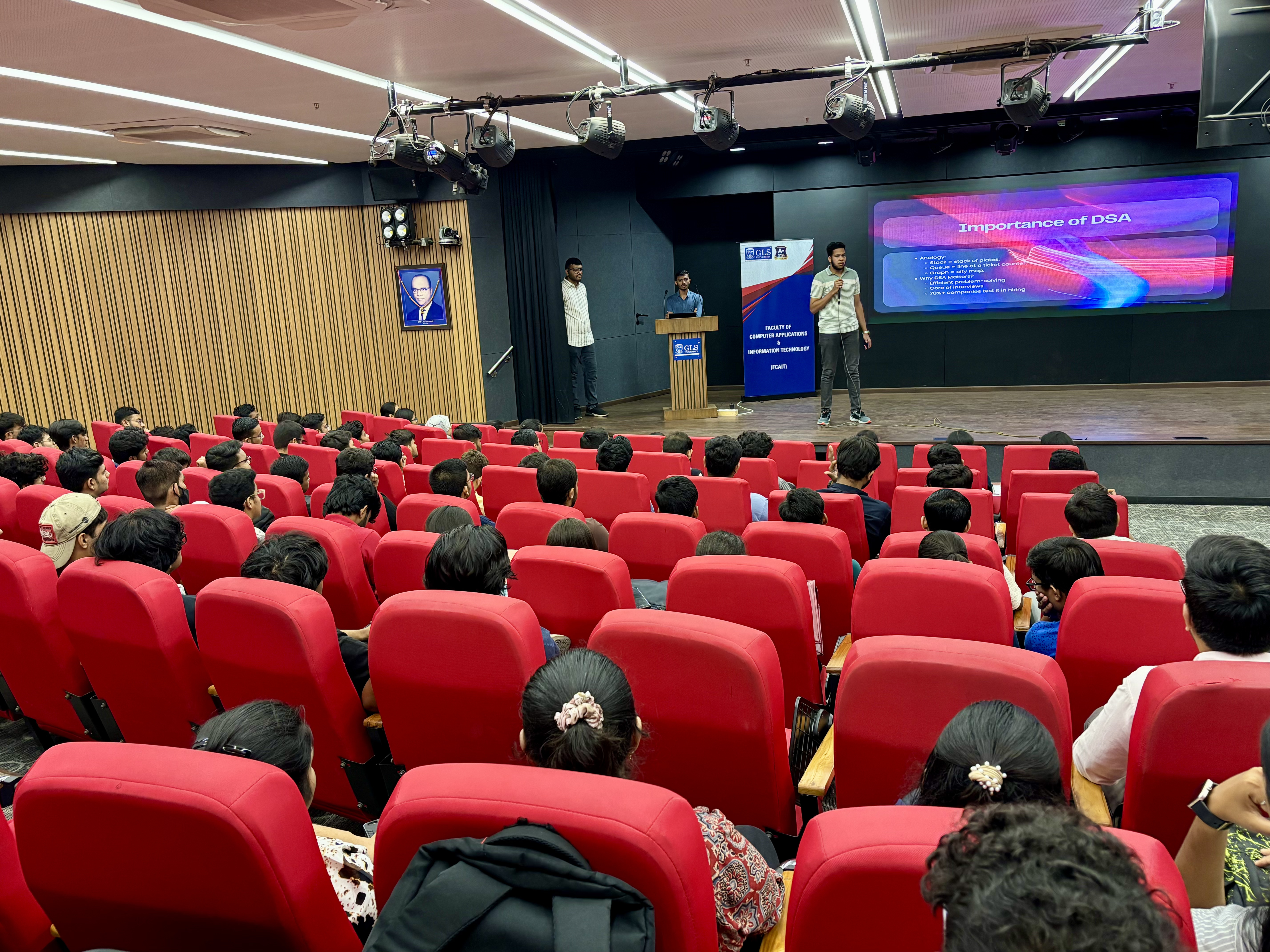 Technology is seamlessly building new avenues of knowledge for mankind. There are a lot of scopes and opportunities to learn new technologies, explore various versions and dimensions of technologies, and implement the practical aspects of technologies thereby improvising on the existing technologies. FCAIT equips its students to build an aptitude for exploring these prospects around technology through its so-called signature activity TECHTALKS. TechTalks are futuristic technology-oriented talks wherein students explore various upcoming, trending and popular techniques and technologies and present the same to other students through talk shows. These are not regular talk shows but involve students managing the entire show that includes hands-on working and demos of practical concepts as well as seminars of theoretical concepts.